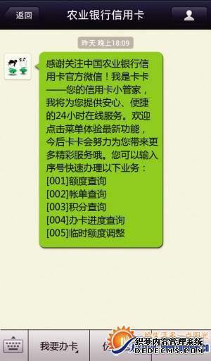 提交申请后,小会员可以通过关注农业银行的官方信用卡号来检查信用卡报价和批量卡费用进度。