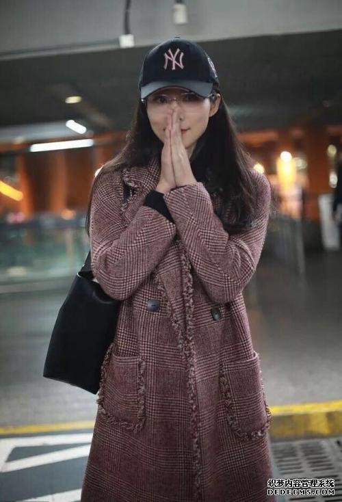 杨迁熙在机场的出现比较少见。她带了一顶黑帽子。这顶帽子特别可爱,非常适合紫色头发。
